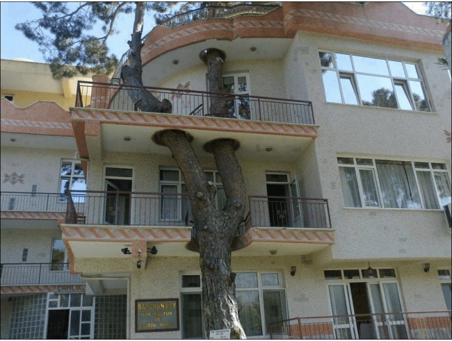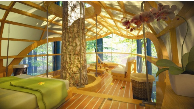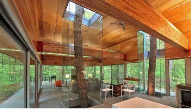 Mich hat die kreative Art, wie der Baum jeweils, innerhalb des Hauses oder am Rande, integriert und damit ein natürlicher Teil des Gebäudes wurde, sehr gefallen. Für mich persönlich ist es eine wunderbare Vorstellung, mitten im Haus den Stamm eines Baum berühren und anschauen zu können.