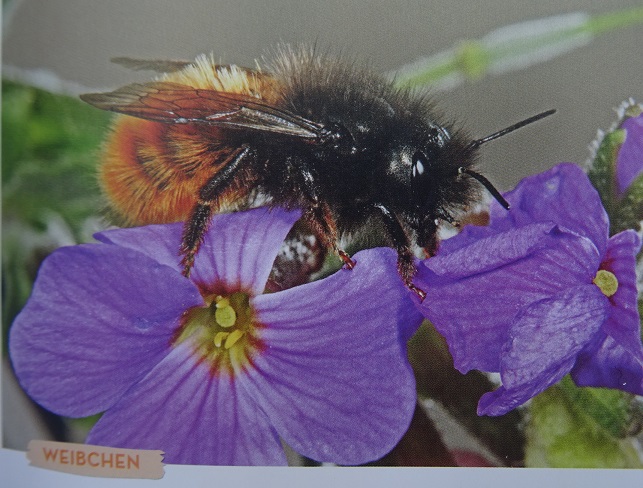 Im Siedlungsbereich fliegen gleichzeitig die kleinere Rote Mauerbiene (Osmia bicornis) sowie die Zweifarbige Mauerbiene (Osmia bicolor)