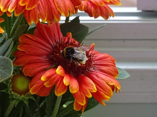 Gestern beobachtet ich mit Freude eine Erdhummel, die in den Innenbereich meines Balkons, der mit verschiebbaren Glaselementen ausgestattet ist, mutig einflog und diese Blume, über Stunden hinweg, aberntete. Und nun, ringsherum, mit Pollen überzogen ist. Nachtrag: Die Hummel besucht die Blume schon seit drei Tagen und sammelt eifrig Pollen. Feierabend ist circa um 17.30 Uhr 🙂 Wenn es einen Regenschauer gibt, dann kehrt sie, sobald es aufgehört hat, wieder zurück !