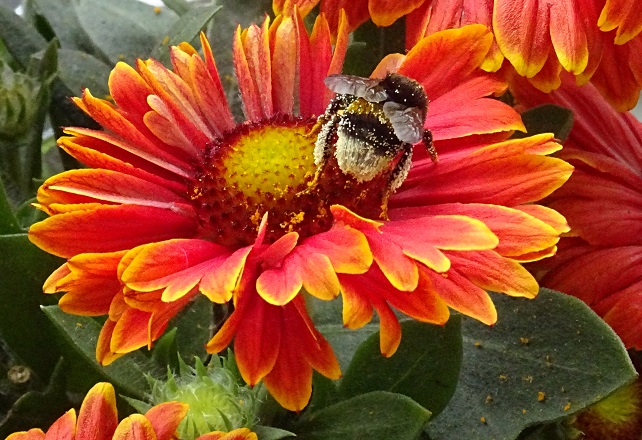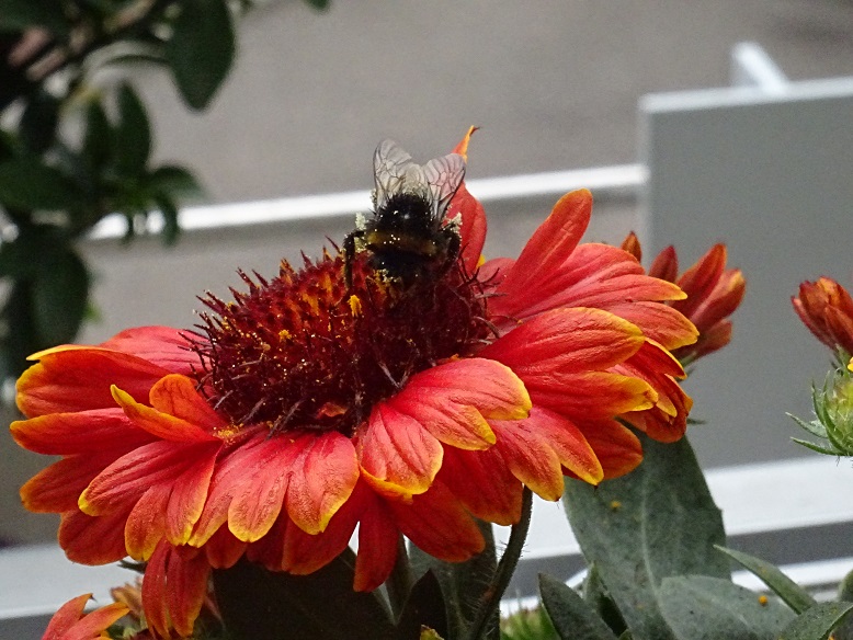 Gestern beobachtet ich mit Freude eine Erdhummel, die in den Innenbereich meines Balkons, der mit verschiebbaren Glaselementen ausgestattet ist, mutig einflog und diese Blume, über Stunden hinweg, aberntete. Und nun, ringsherum, mit Pollen überzogen ist. Nachtrag: Die Hummel besucht die Blume schon seit drei Tagen und sammelt eifrig Pollen. Feierabend ist circa um 17.30 Uhr 🙂 Wenn es einen Regenschauer gibt, dann kehrt sie, sobald es aufgehört hat, wieder zurück !